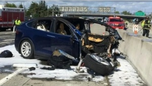 Tesla Model S that crashed in Florida while on self-driving mode killing the driver. (Source [5].)