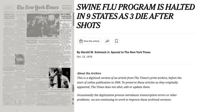 But as we can see from the 1976 New York Times article, 9 states took action to stop the deadly Flu shot after only a few deaths at that time.
