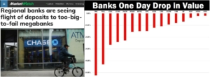 Most banking is done online now, so long lines at banks to withdraw funds are not something most are going to see these days. What is happening instead is that customers are withdrawing their funds from the riskier, mostly smaller banks, and putting them into larger banks that they believe are “too big to fail” because they believe the Fed will step in to prevent that.