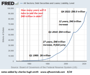 The problem is the trading-rats’ confidence in the Fed Put incentivizes a near-infinite expansion of moral hazard as the trading-rats can expand debt and leverage without any limit because the consequences (potentially devastating losses) have been taken off the table by the Fed’s “guaranteed” reversal of any swoon in risk assets.