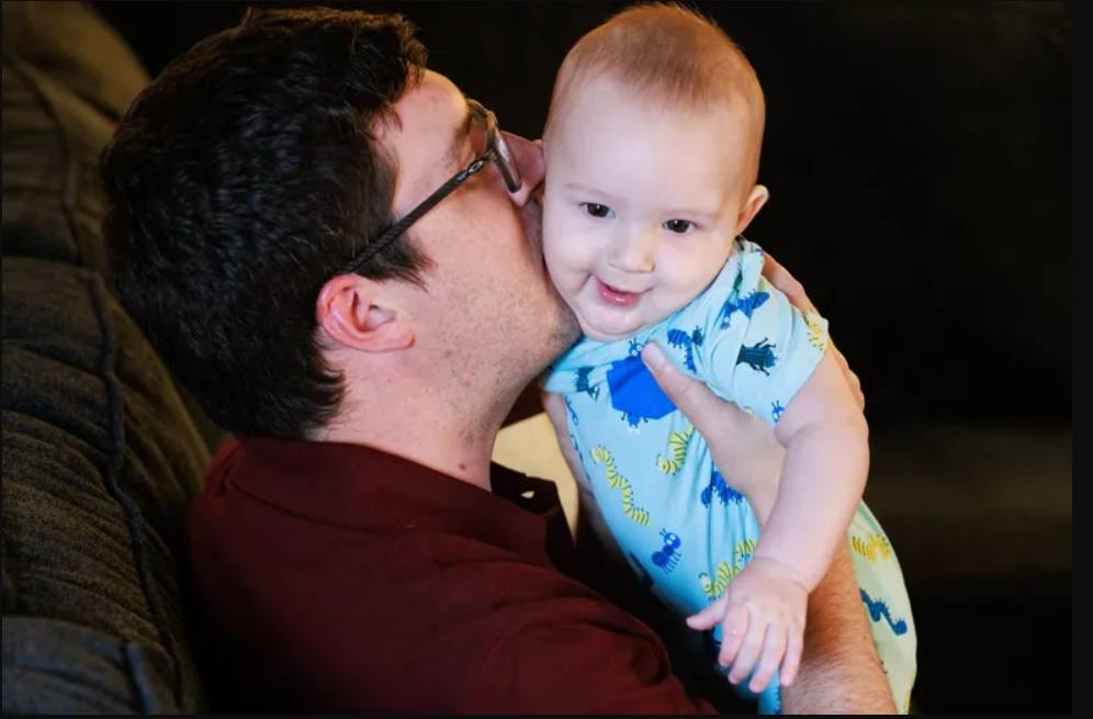Dan Massaro nuzzles his son. After the baby was taken away from his parents, their lawyers contacted Dr. Niran Al-Agba. She determined that the baby’s “bruises” were actually birthmarks. The state dropped its case. (Erika Schultz / The Seattle Times – Source.)
