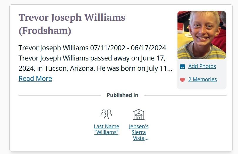 Note: Since publishing this story we have learned that Trevor’s second last name, “Williams”, is the name of his biological father, not another foster or adopted parent.