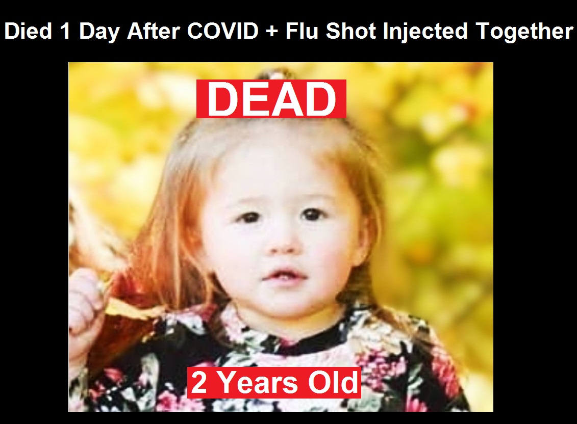 After the Biden Administration White House told all Americans to go out and get the COVID-19 shots and flu shots together, despite there being ZERO studies done on the side effects from taking both toxic shots at the same time, there have now been over 6000 injuries reported to the Government VAERS (Vaccine Adverse Events Reporting System) database, along with 147 deaths, from those who took both shots together. Less than 1% of all vaccine side effects are ever reported to VAERS. One of those deaths was a 2-year-old girl from New Hampshire who was injected with the Moderna COVID-19 shot along with the GlaxoSmithKline Flulaval Quadrivalent Flu shot on December 15, 2022, and then died the next day.