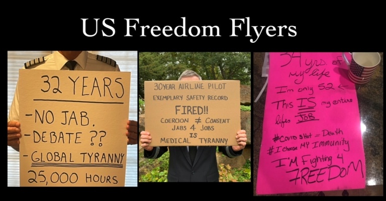 A group of airline professionals have banded together to fight back against mandatory COVID-19 vaccination mandates. They call themselves the "U.S. Freedom Flyers." From their website: "US Freedom Flyers currently encompasses all travel and transportation-affiliated industries, including all employees, unionized or not, who are affected by the Federal Government’s Covid-19 Vaccine Mandates. Whether you’re a pilot, flight attendant, mechanic, dispatcher, gate agent, or ramper, we have room for you! In addition, we seek to be an inclusive organization contributing to the support of other industries. If you are in other transportation industries, such as shipping, trucking, bussing, etc. please join our organization! If you are in an industry other than transportation and travel, we welcome you also, and want to collaborate with you to help preserve our medical freedoms!" They have teamed up with Leslie Manookian of Health Freedom Defense Fund, George Wentz of Davillier Law Group, and Airline Professionals For Justice (AP4J) to fight back against mandatory COVID-19 shots for the airline industry. These Freedom Flyers have just published a video with written messages from more than 60 of them, ranging from ramp agents, to flight attendants, to pilots and captains, to even a "senior vice president."