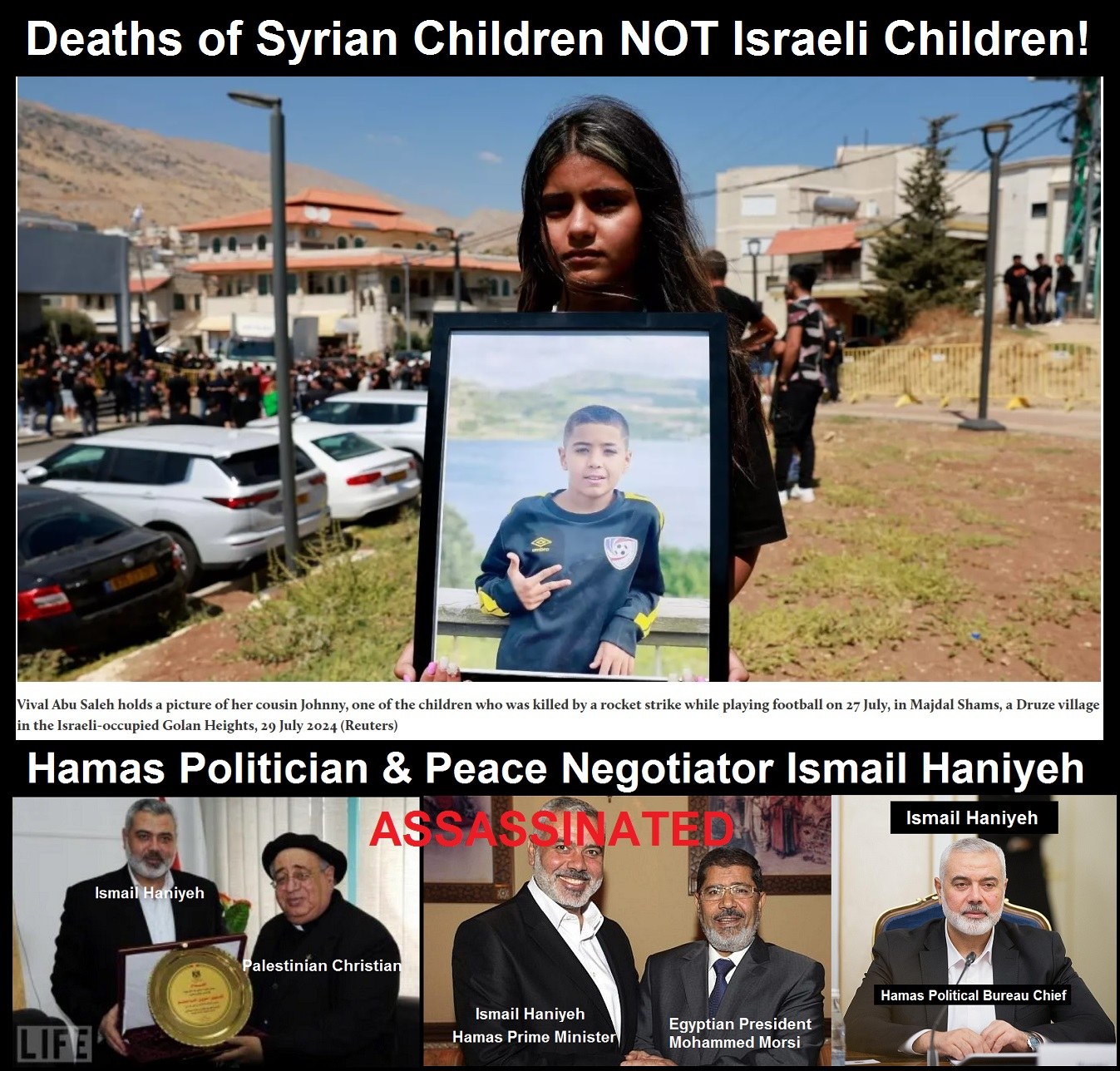 Lie that Israeli Children Died in Golan Heights used by Zionist Israel to Assassinate Top Hamas Politician Who was Negotiating Peace